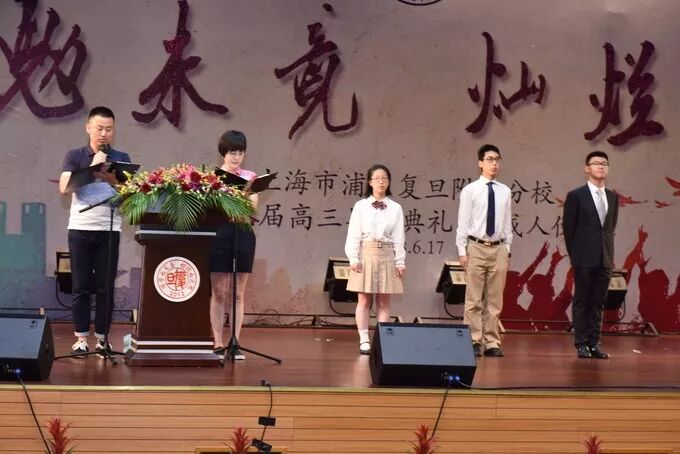 随后,同学们再次昂首迈步上台,从老师们的手中接过《中华人民共和国宪法》,并在团委书记方一幸老师的带领下,郑重宣誓成人。
