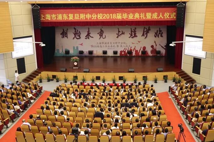 花有重开日,人无再少年;相逢一笑里,又到毕业季。2018年6月17日下午14点,上海市浦东复旦附中分校在学校大报告厅隆重举行2018届高三毕业典礼暨18岁成人仪式。本次毕业典礼主题为“相勉未竟,灿烂伊始”,灵感取自复旦大学校歌歌词,寓意着高中互勉学习的生活虽然迈向了终点,但是人生又将掀开新的灿烂篇章。浦东新区教育局第一教育署署长曹忠先生、上海市浦东复旦附中分校校长吴坚老师、党支部书记兼副校长虞晓贞老师、教师代表、毕业生及家长受邀参加了本次典礼。