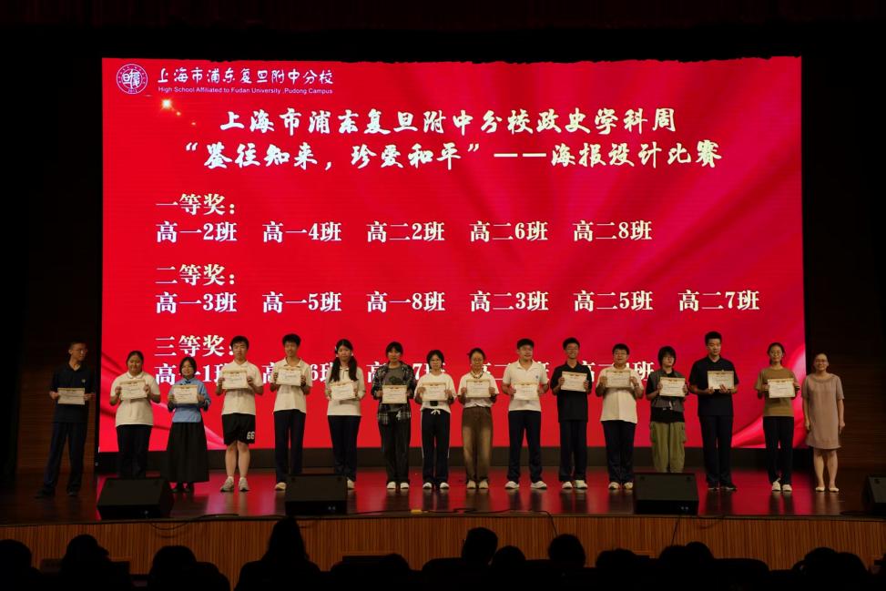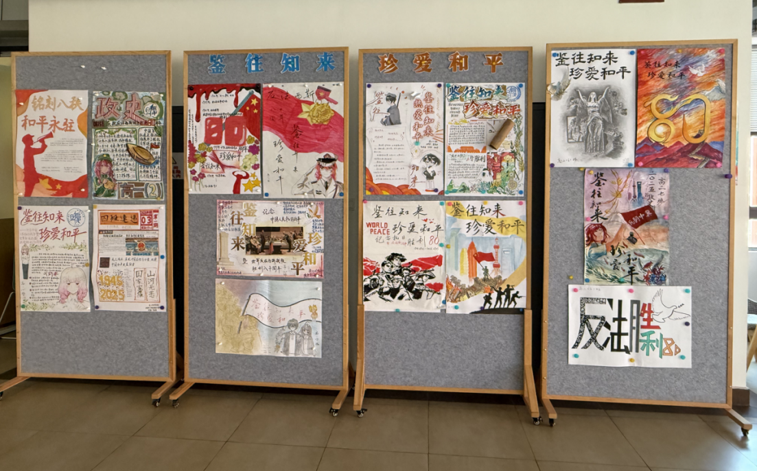 适逢中国人民抗日战争暨世界反法西斯战争胜利80周年,同学们以海报为载体,通过震撼的画面、深刻的文字,展现对历史的铭记与和平的珍视。作品兼具思想性与艺术性,充分体现我校的艺术气息。经评选,高一(2)班、高一(4)班、高二(2)班、高二(6)班、高二(8)班荣获海报设计比赛一等奖,高一(3)班、高一(5)班、高一(8)班、高二(3)班、高二(5)班、高二(7)班获二等奖,高一(1)班、高一(6)班、高一(7)班、高二(1)班、高二(4)班获三等奖,由副校长罗洁老师为获奖班级颁奖。其作品成为校园里一道“以史鉴今”的文化风景线。