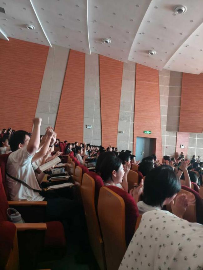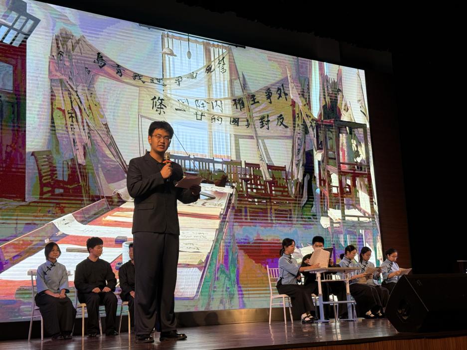 首先登场的高一(8)班演绎了《觉醒年代》片段,一声声“内争主权,外惩国贼”的高呼展现了中国青年的骨气和勇敢,重现五四运动青年学生的热血担当,“天下兴亡,匹夫有责” 的赤诚直抵人心。