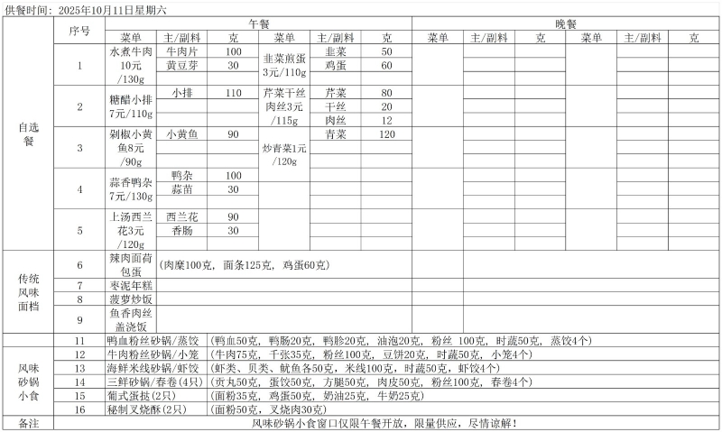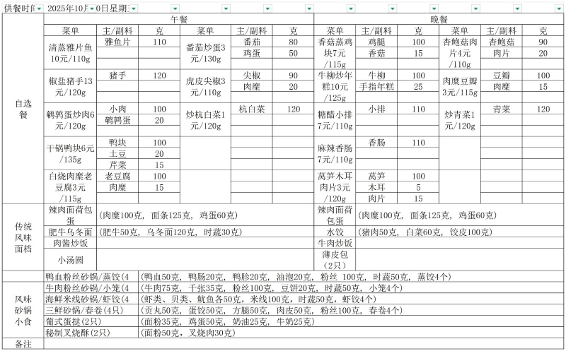 10.9——10.11一周菜谱