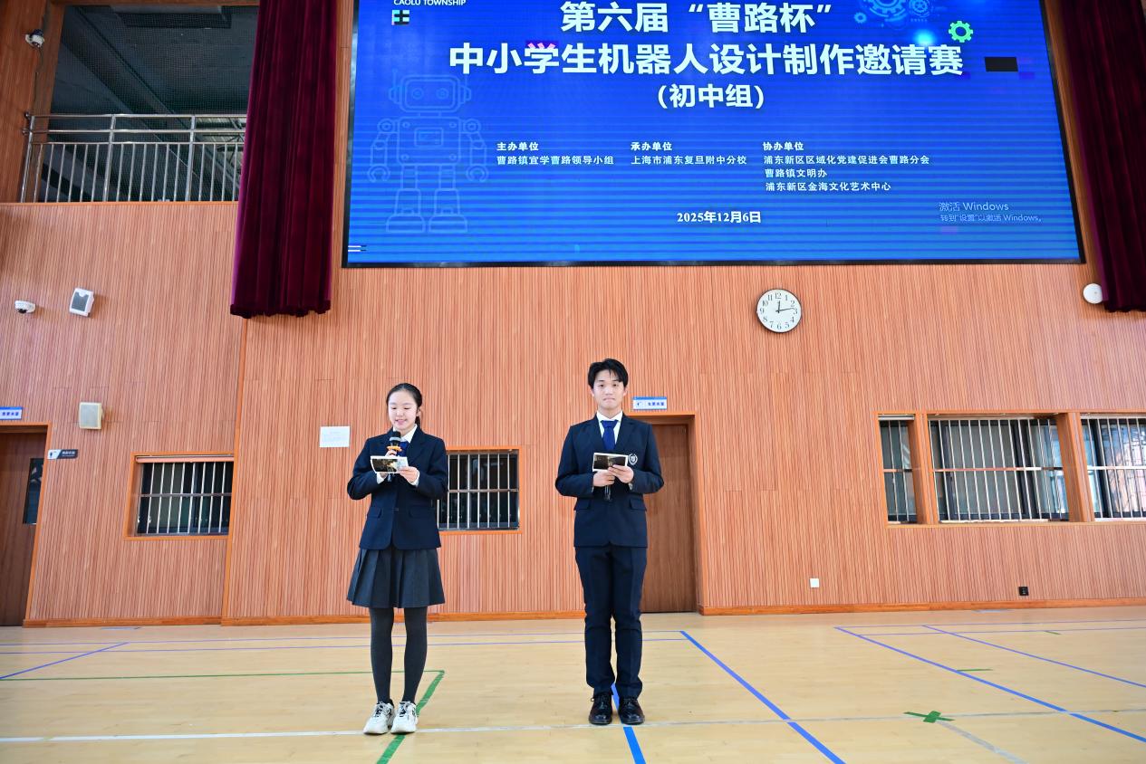 十二月初,为积极响应二十届四中全会中强调的“教育强国、科技强国、人才强国建设,提升国家创新体系整体效能,不断催生新质生产力”的号召,曹路镇举办了第六届“曹路杯”机器人设计制作邀请赛,我校作为承办学校,精心筹备,统筹协调。12月6日,上海市各区初中段共计300多名“科创种子”荟萃我校,一场主题为“足智多谋,决胜绿茵”的科创大赛正式拉开帷幕。此次活动,由我校学生马晨烨和李跃担任主持人。