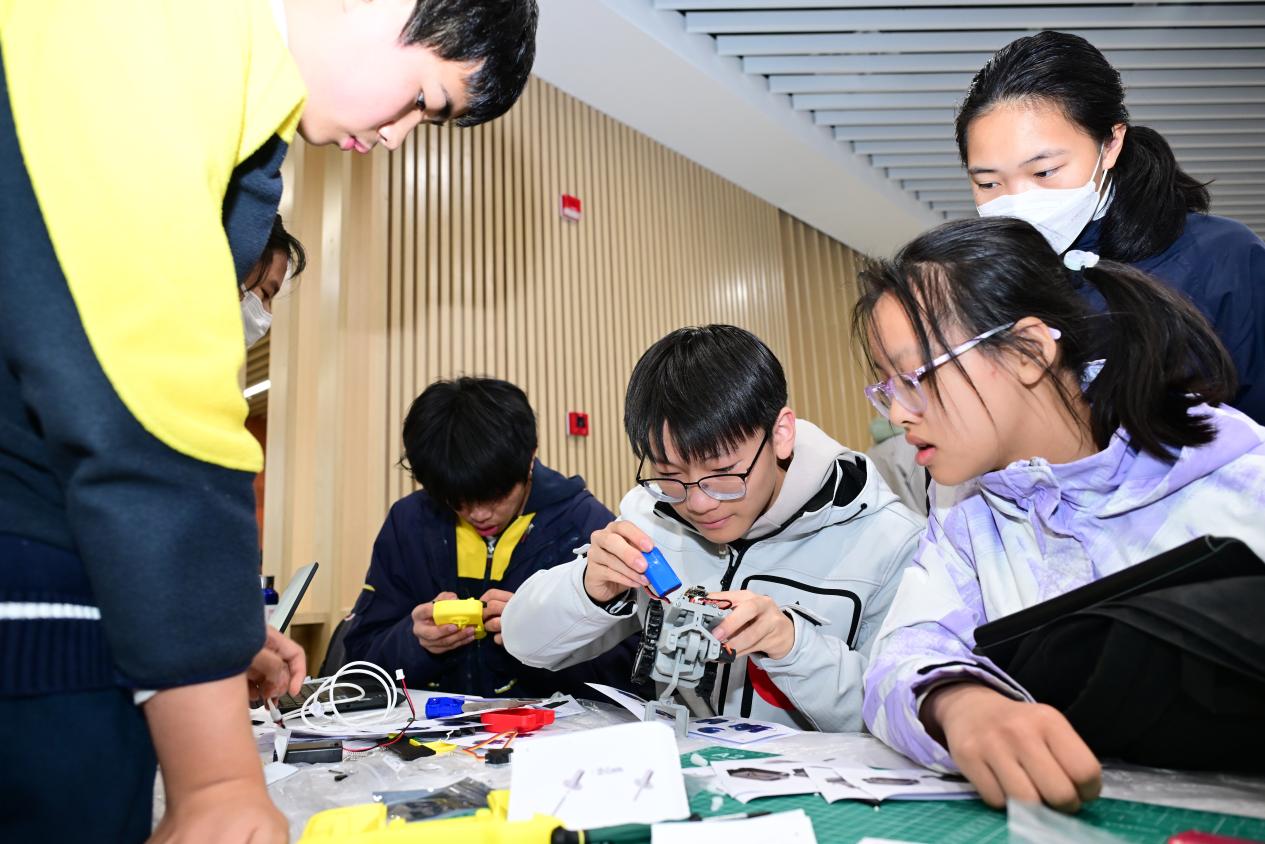 在一次次的失败、尝试、调整、优化的过程中升级和完善着组内的机器人小车,同学们收获了团队协作和迎难而上带来的成就感。场内的辅助老师也亲切地给予有困难的小组及时的指导,为每一位同学提供成长的机会。