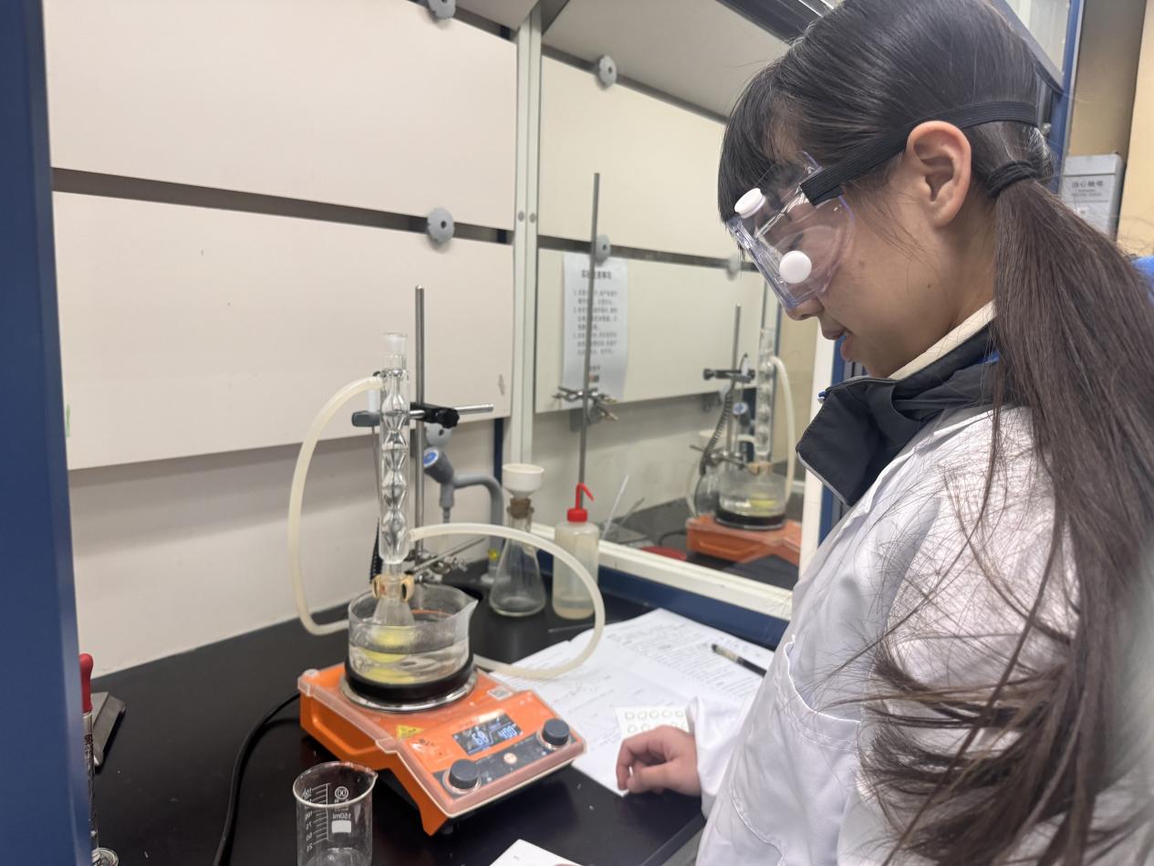 在天平精密的称量与溶液润洗配置中,我们尝试实践者科学的严谨性;在滴定实验中,我们见证了铕离子在能量跃迁与释放的次次增强,将理论知识转化为眼见所得;从搅拌回流到抽滤干燥,我们亲身领略了化学合成过程的精密与魅力。实验过程中虽偶有手忙脚乱,但在最终完成产物的制备与计算时,所有的忙乱都化作一种求知的满足感——将宏观世界的神秘现象回归于确凿的实验数据和清晰的科学结论,加深我们对科学探索的体验与兴趣。