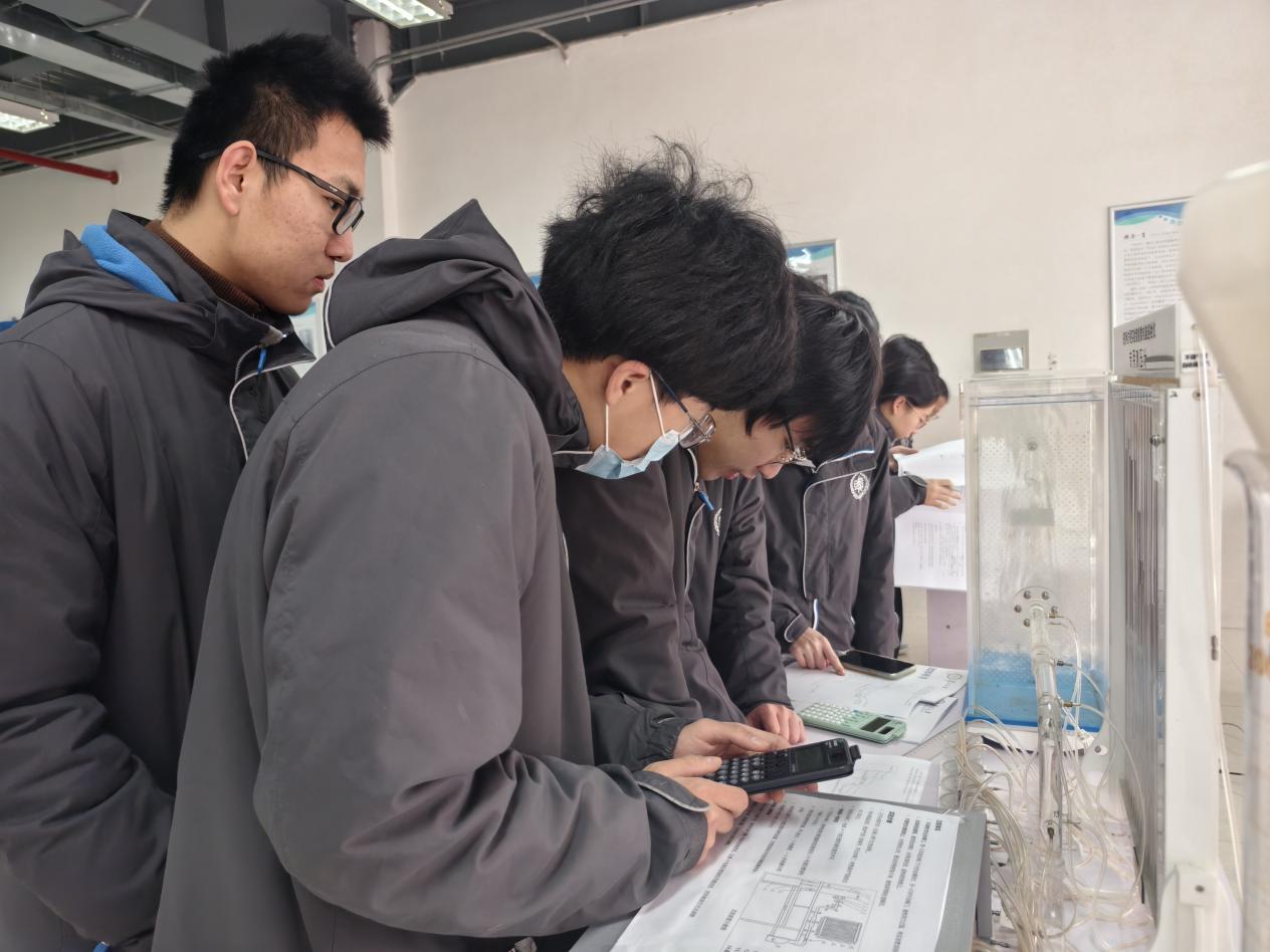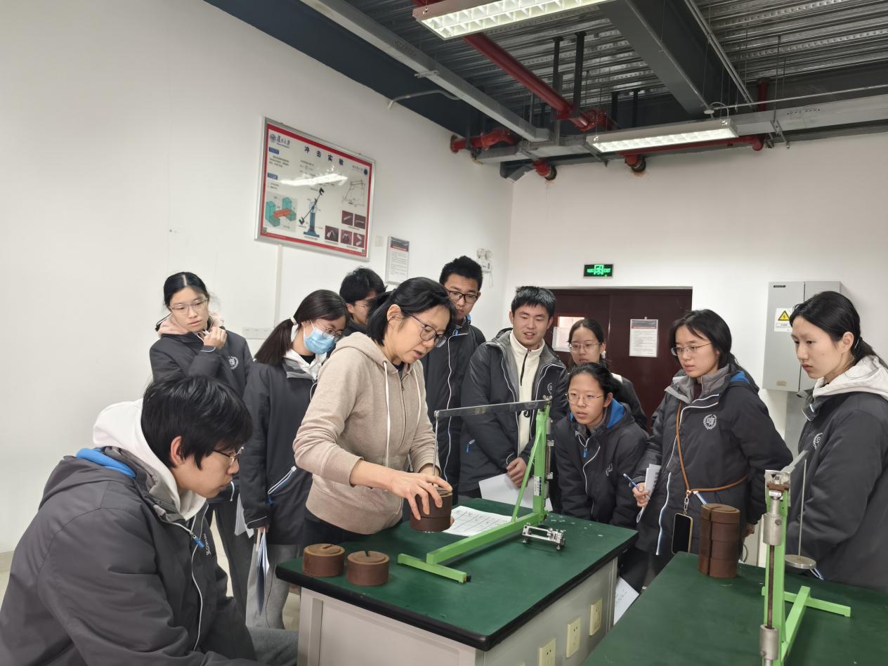 我校学生在复旦大学航空航天与力学实验中心开展了三组力学实验。我们通过特别的水循环装置验证了实际流体总流的能量方程,使用球铰式引伸仪测量了低碳钢标准圆试件的弹性模量。我们还使用了非接触式激振仪,缓慢调节信号源频率,直至它与悬梁臂(钢尺)固有频率相同,观察到了与平日生活中很不相同的共振现象。实验课教会我们的不只是怎么操作仪器,更重要的是遇到问题时的解决思路 —— 从猜想、设计方案,到动手验证、复盘失败原因,这个过程比实验结果更有收获,也让我们变得更有耐心和专注力。