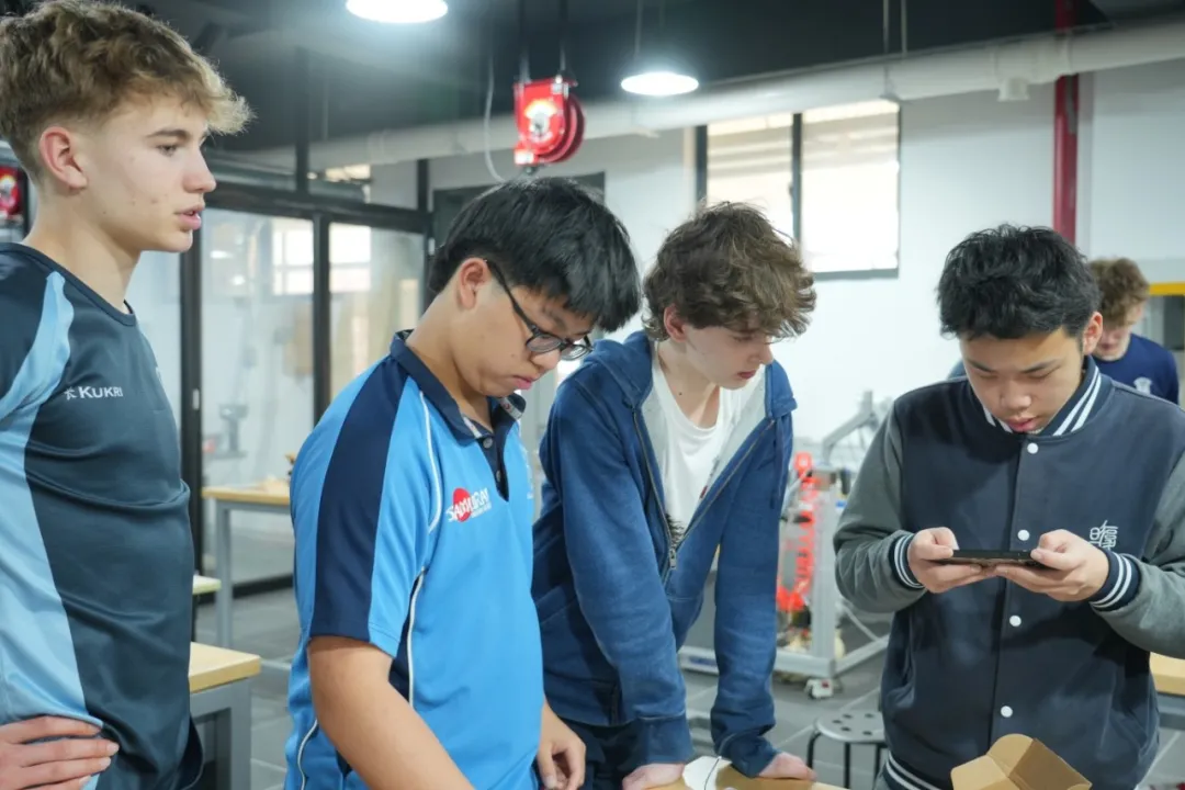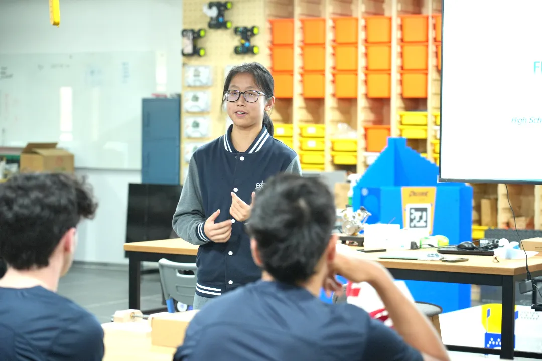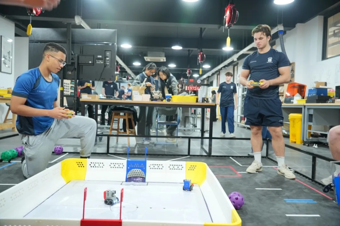 下午一点半,来访师生首先来到我校理工科实验室参与了学校的机器人社团课程。我校FFFabulous机器人社社长邹羽涵用流利的英语为他们介绍了社团的深厚底蕴、队伍培养模式和丰富的比赛经历,并进行跨国际的“First”文化交流,彰显了我校对机器人社以及学生科技素养的重视与发展。
